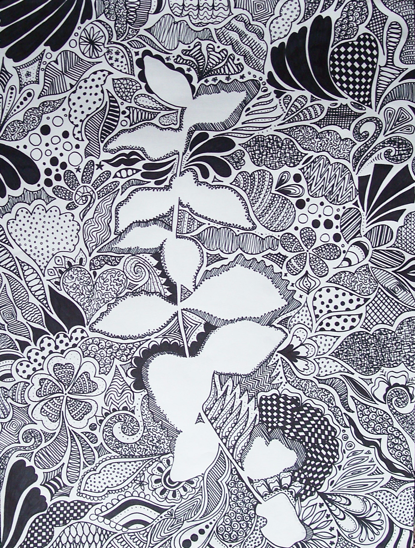 7. Observational Drawing negative space project, 24in x 18in, marker on paper