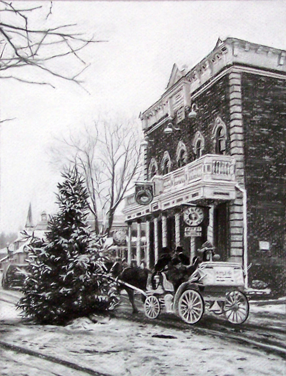 Main Street, charcoal on paper, 14″ x 11″