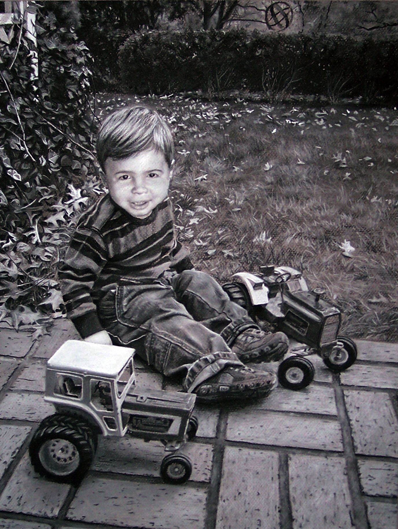 5. New Tractors, 20in x 15in, charcoal on paper, 2014