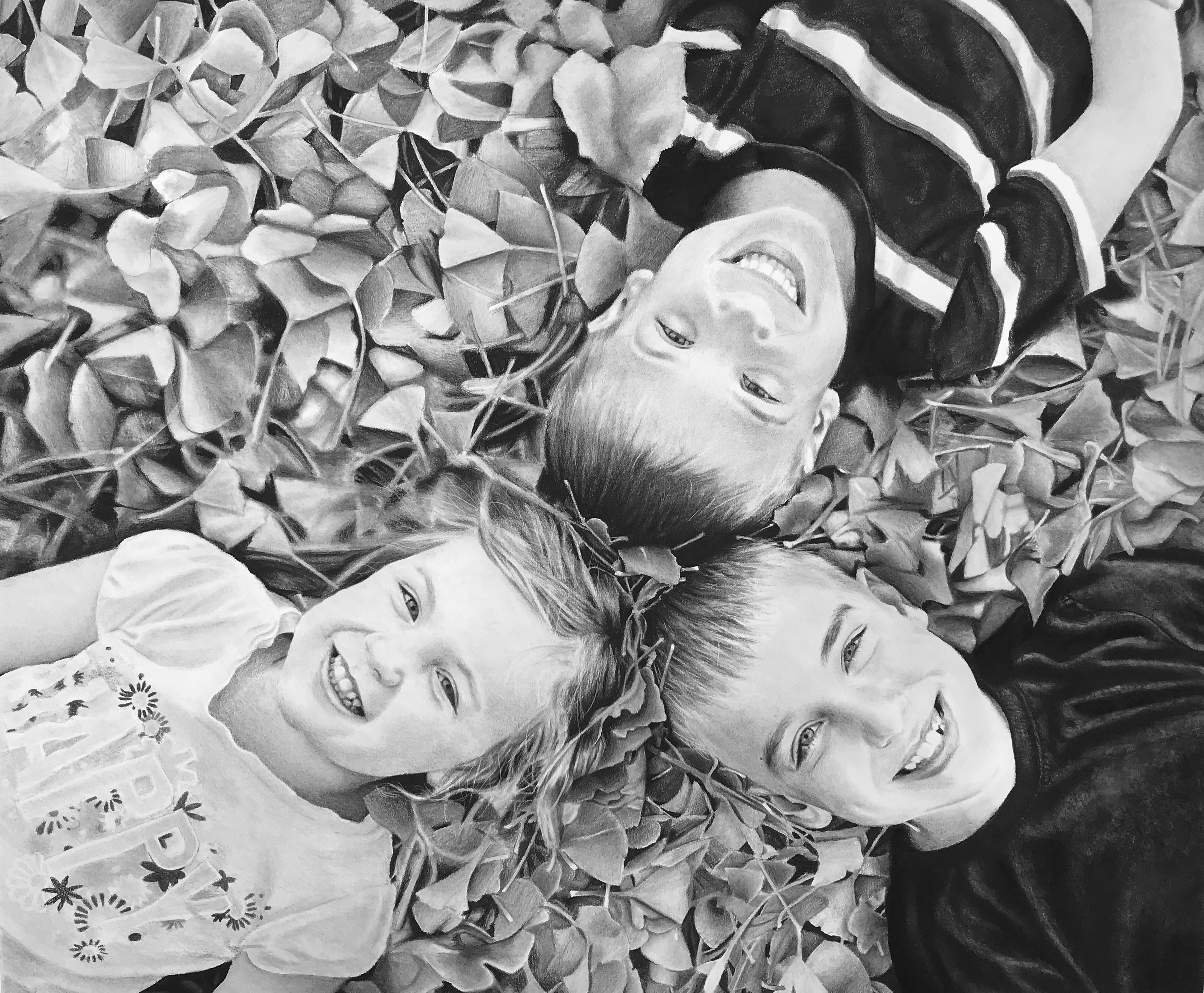 Trio, charcoal on paper, 36″ x 30″